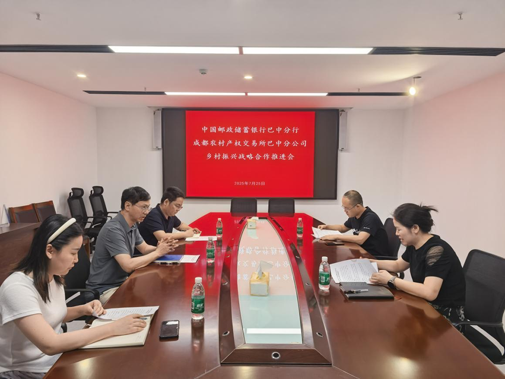 為充分發(fā)揮成都農(nóng)交所四川省農(nóng)村產(chǎn)權(quán)綜合交易平臺優(yōu)勢和郵儲銀行融資及其他綜合金融服務(wù)優(yōu)勢,通過資源互補(bǔ)、信息互通、協(xié)作配合,共同推進(jìn)服務(wù)農(nóng)村集體經(jīng)濟(jì)組織和新型農(nóng)業(yè)經(jīng)營主體的金融支農(nóng)工作。2025年7月25日下午,中國郵政儲蓄銀行巴中分行與成都農(nóng)村產(chǎn)權(quán)交易所巴中分公司、巴中市鑫匯農(nóng)業(yè)服務(wù)有限公司召開了鄉(xiāng)村振興戰(zhàn)略合作推進(jìn)會。