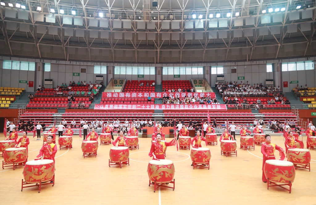 巴中發(fā)展集團員工在全市國資系統(tǒng)職工運動會開幕式上表演自創(chuàng)文藝節(jié)目《領(lǐng)航筑夢》